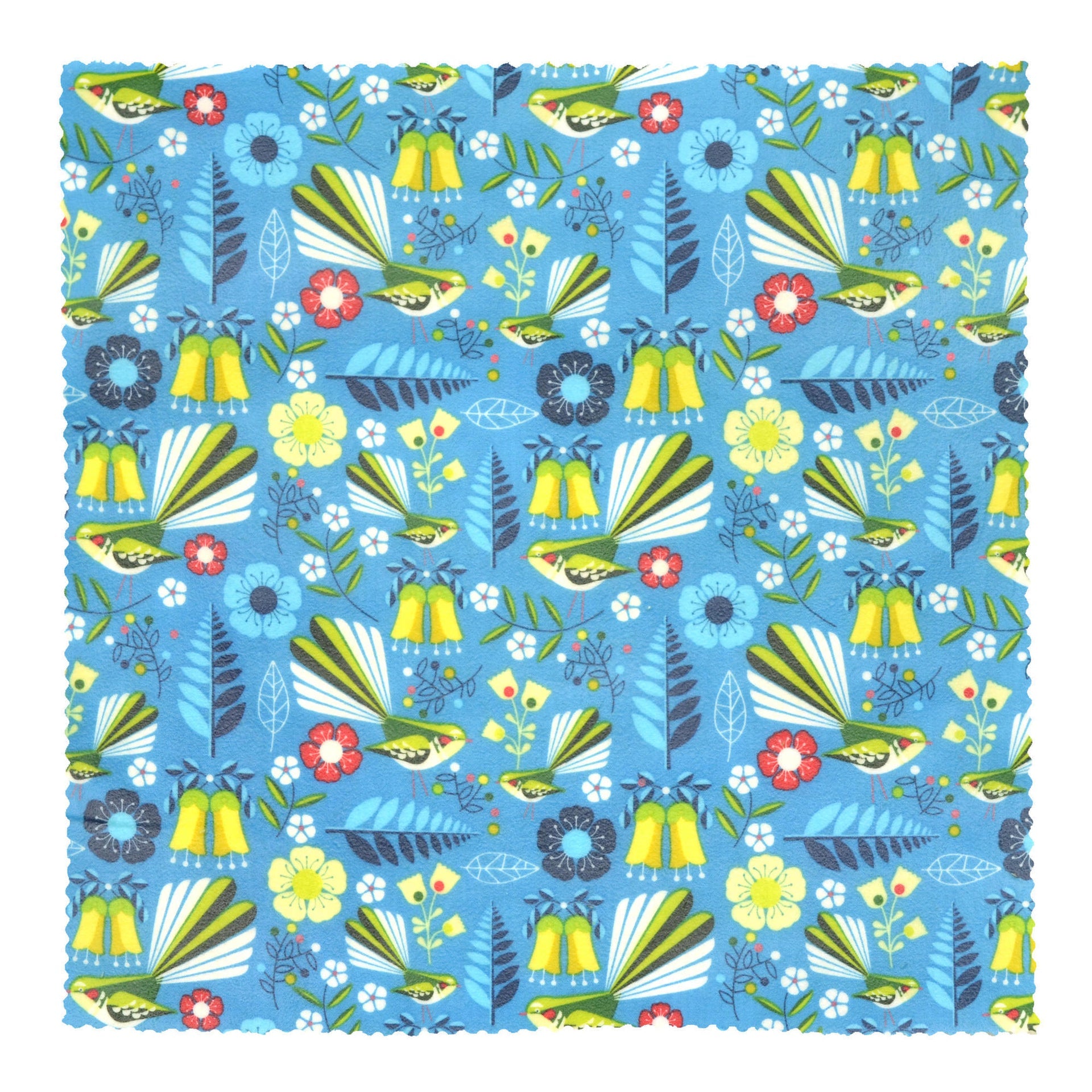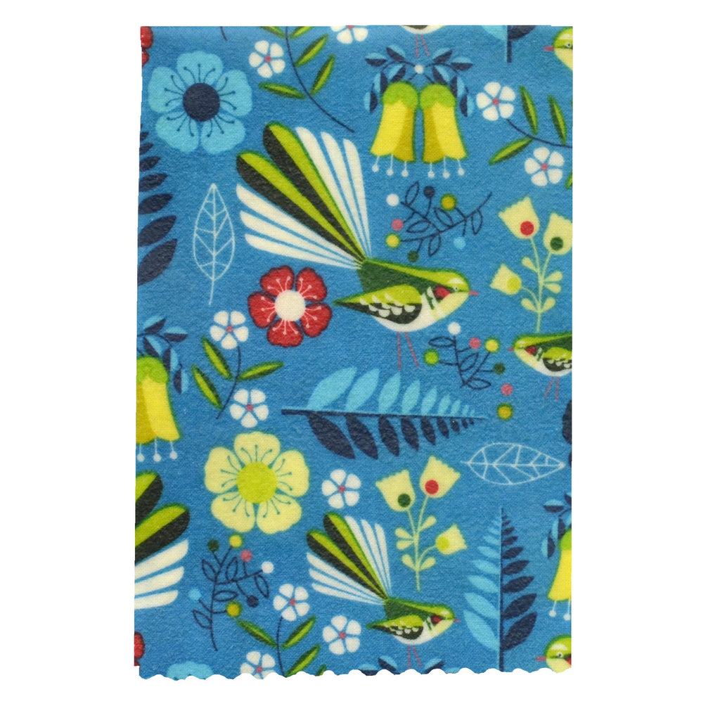 Possibly our most popular design - these bright little fantails, icons of the kiwi bush,  flitting about in a forest of kowhai, manuka and fern fronds are loved by everyone, and deservedly so.