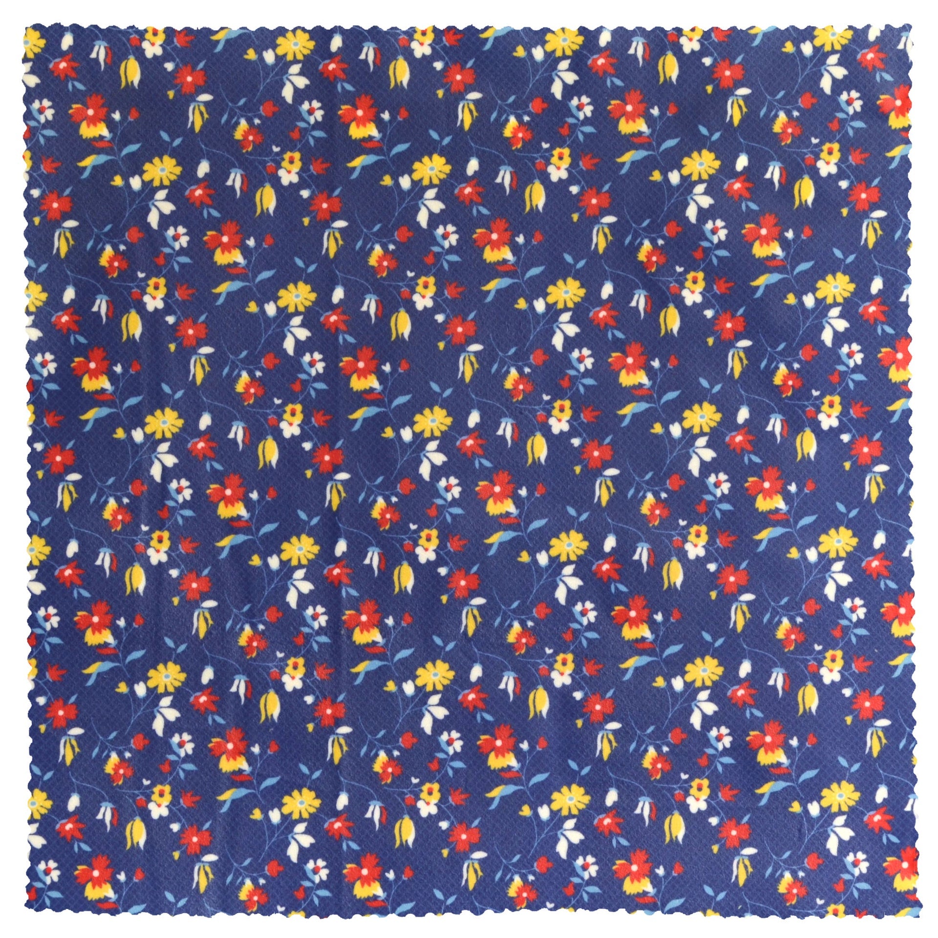 Bright, breezy, and blooming with charm — Picnic Patch features a vivid blue background dotted with tiny white, red, and yellow flowers. It’s got a sweet cottage feel, perfect for picnics, lunchboxes, or adding a splash of joy to your kitchen.