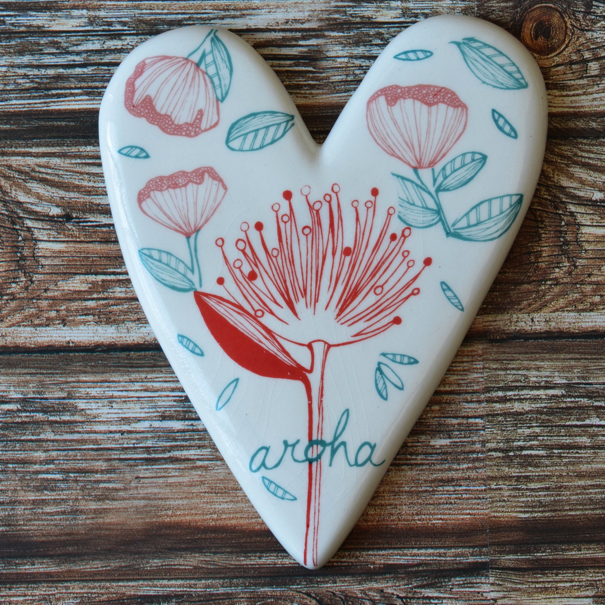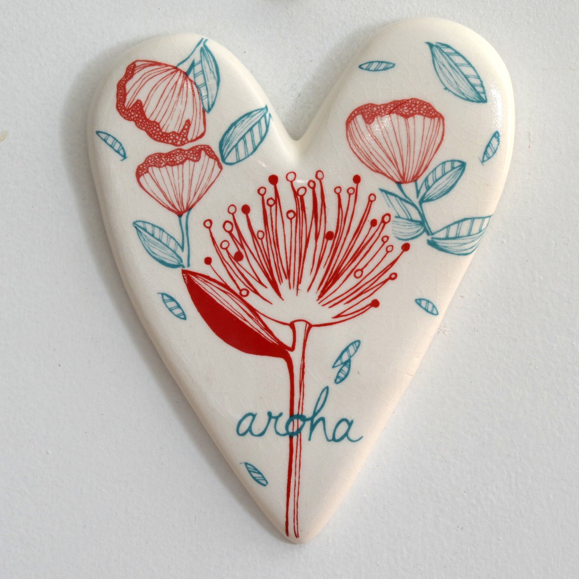 A wire loop is embedded in the back of each piece for hanging.